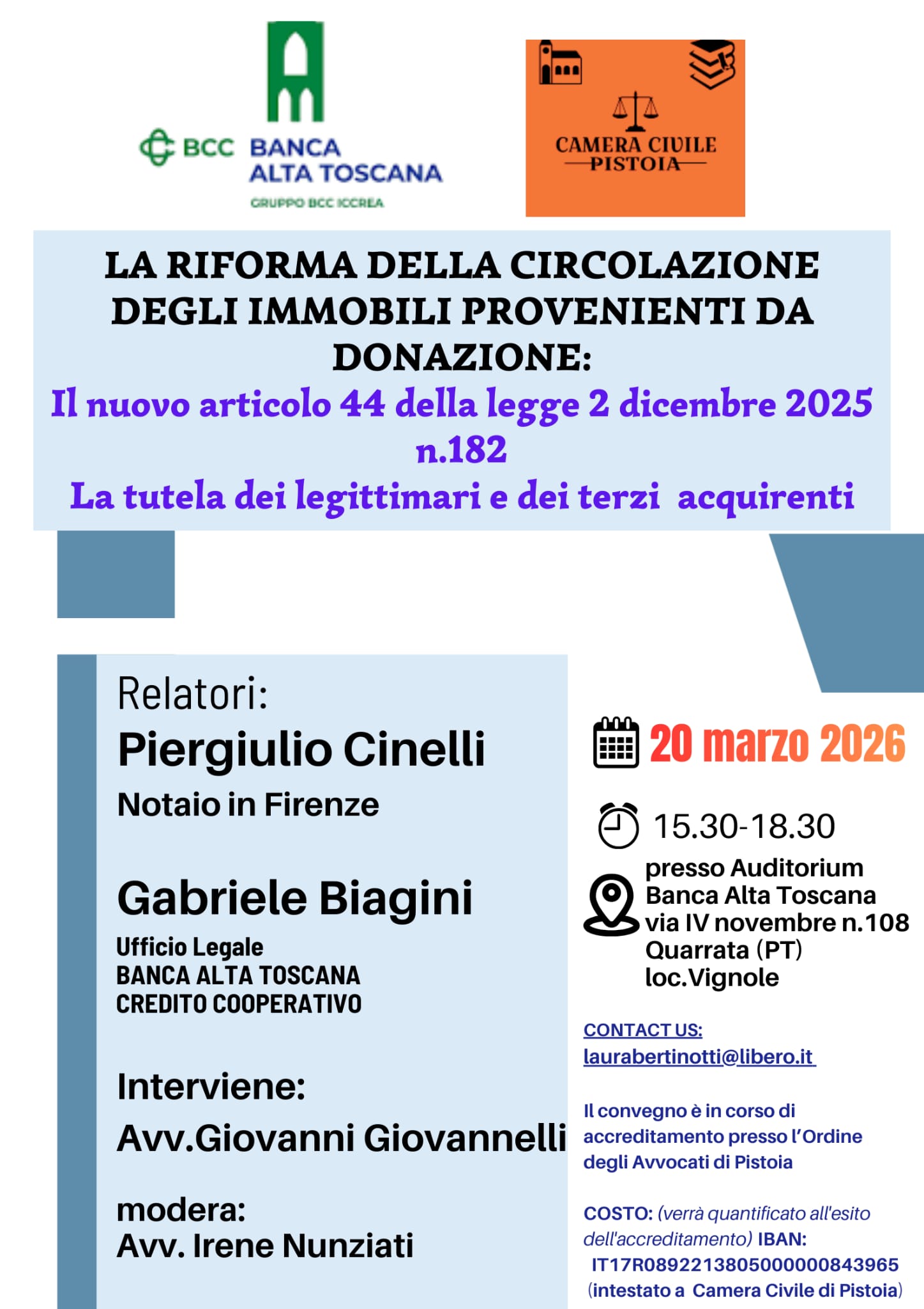 La Camera Civile di Pistoia svolge una attività orientata al settore culturale e scientifico del diritto, impegnandosi efficacemente nella organizzazione di congressi, seminari e corsi di addestramento in discipline giuridiche specialistiche.